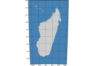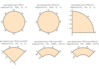 PyGMT supports many map projections; see GMT Map Projections for an overview. Use the projection parameter to specify which one you want to use in all plotting methods. The projection is specified by a one-letter code along with (sometimes optional) reference longitude and latitude and the width of the map (for example, Alon0/lat0[/horizon]/width). The map height is determined based on the region and projection.